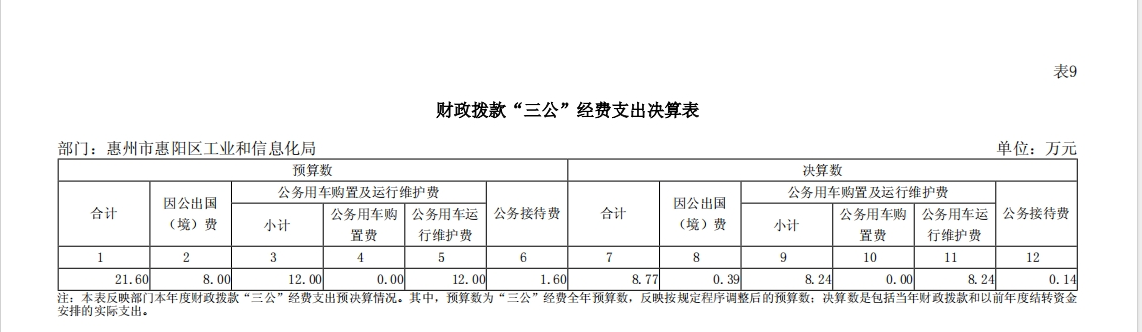 2024年度惠州市惠陽(yáng)區(qū)工業(yè)和信息化局“三公”經(jīng)費(fèi)決算表