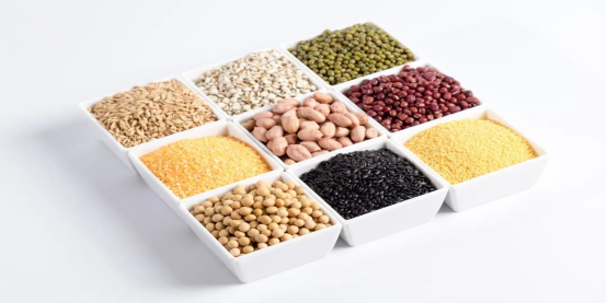 粗糧和全谷物占主食的三分之一。粗糧、全谷物含有膳食纖維。研究發現,水溶性膳食纖維具有排泄鈉的作用,經常食用能預防高血壓。成年人一天的飲食中雜糧的進食量要占到三分之一。