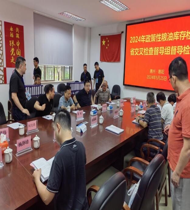 5月25日、26日,按照2024年全省政策性糧油庫存檢查進度安排,江門市叉檢查組到我區開展省內交叉重點檢查第二階段的市級檢查工作。市發展改革局副局長、市糧食和物資儲備局局長黃海濤帶領市發展改革局相關工作人員陪同檢查,區發展改革局黨組書記齊翊晟攜區發展改革局有關工作人員、區相關涉糧企業迎檢。
