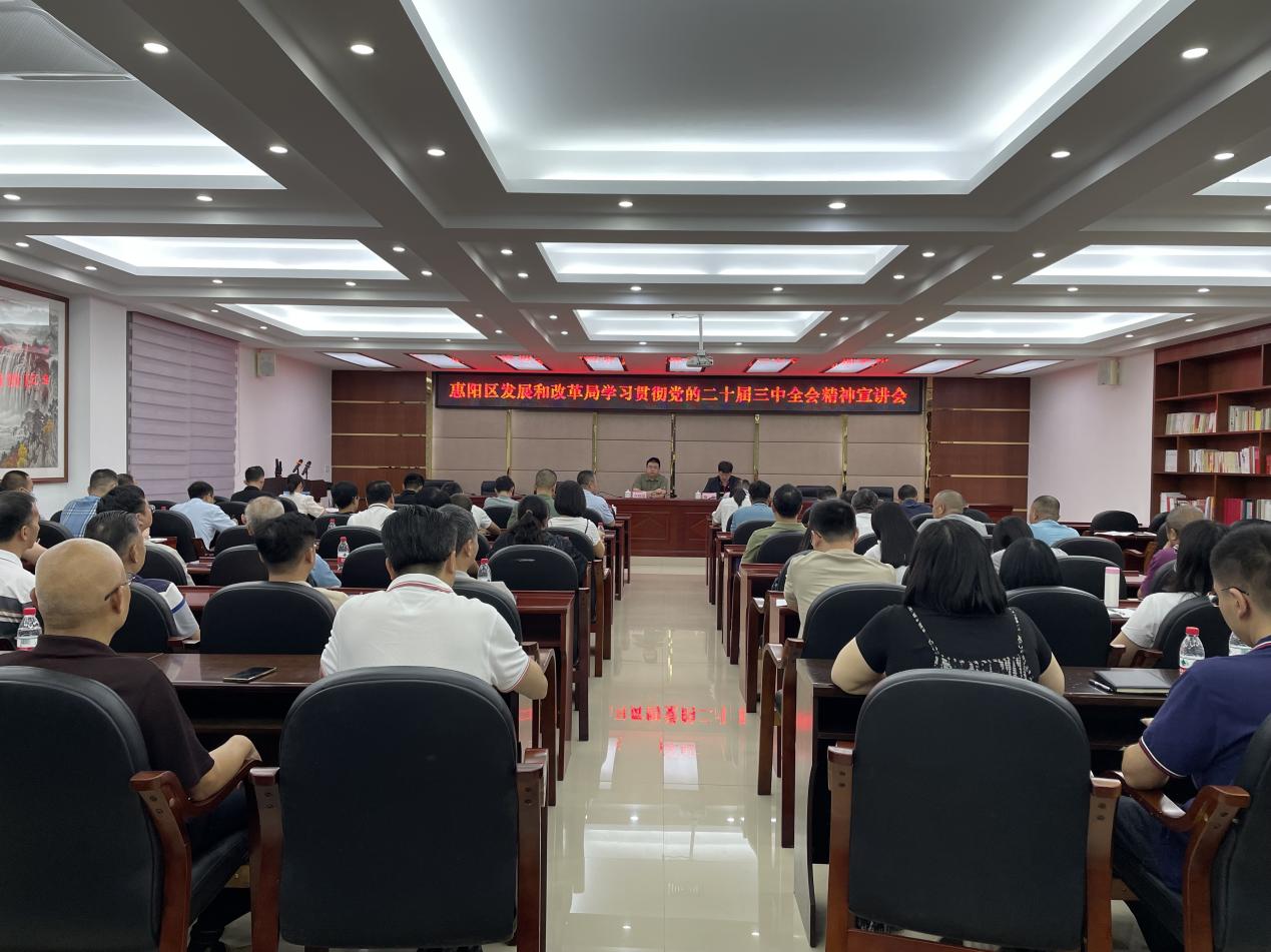10月18日下午,惠陽區發展和改革局召開學習貫徹黨的二十屆三中全會精神宣講會,局黨組書記、局長齊翊晟作主題宣講,局黨組成員、機關黨委副書記陶聰主持會議。