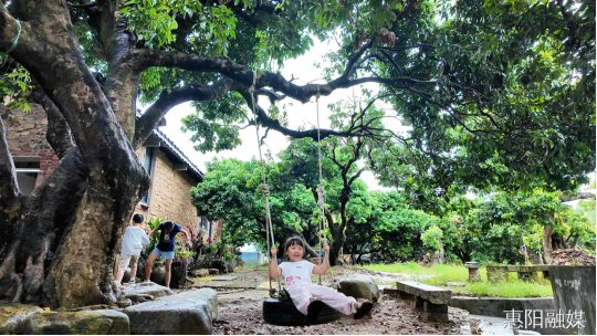 踏入庭院,精心布置的花卉景觀錯落有致,五彩斑斕的墻繪與周邊的綠樹紅花相互映襯,仿佛一幅生動的田園畫卷。據介紹,這座庭院不僅是一道美麗的風景,如今更成為了鄉村孩童們的精神樂園。利用經營藝術機構的資源,吳瑞娟以這獨特空間為載體,開辦了公益美術課堂,免費為孩子們上美術課,為鄉村的孩子們提供了一個充滿鄉村文化和藝術氛圍的學習場所。記者看到,院子里保留了不少農耕器具,有用釘耙改造而成的石凳、有舊式木制脫谷機、有用石磨臺改裝的桌面,還有舊式打糕機......它們訴說著舊時的鄉村故事,成為了鄉村農耕文化的傳播載體。在這里,孩子們可以盡情地發揮想象,在感受藝術魅力的同時,也加深對鄉村文化的理解和熱愛。